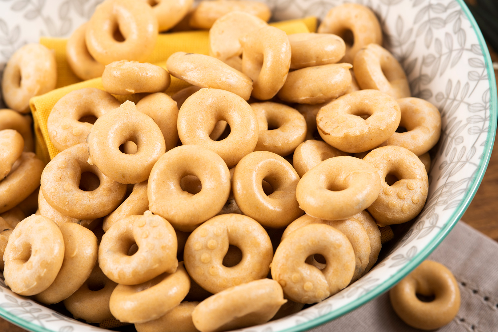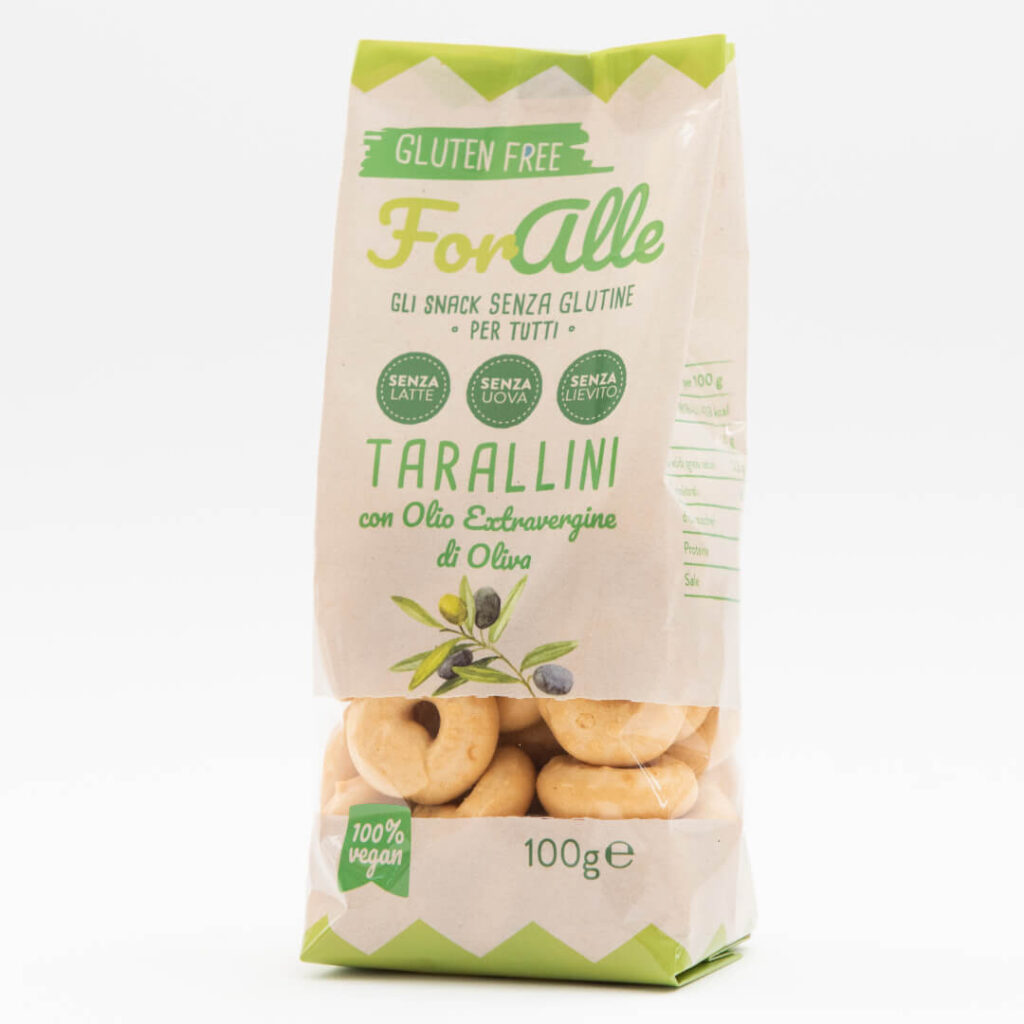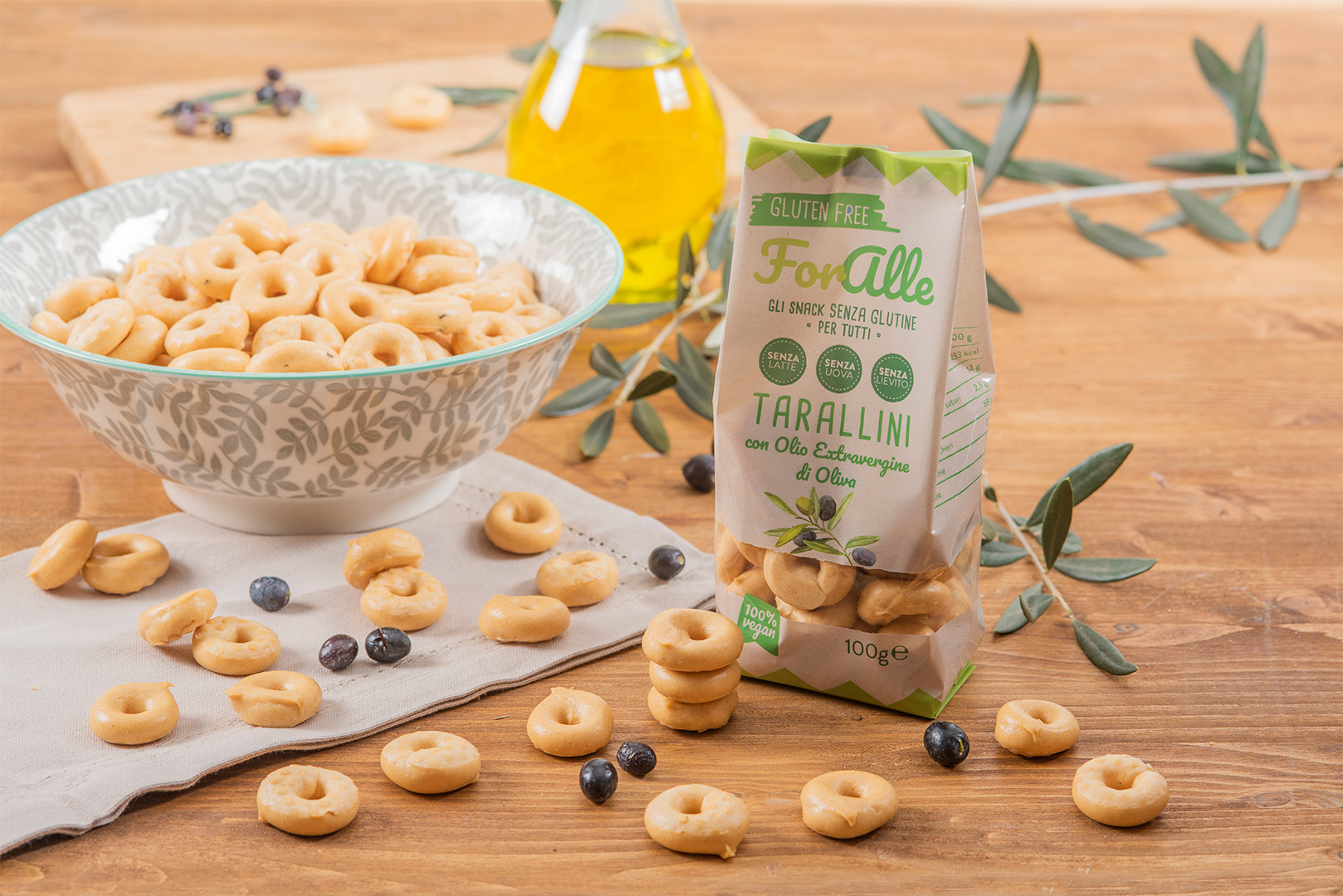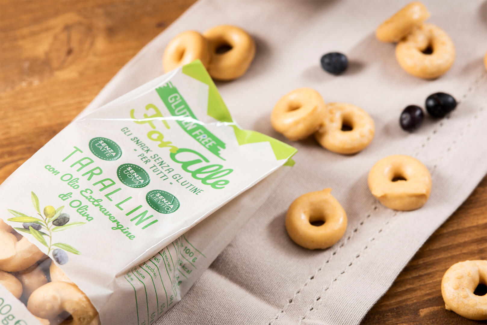 Pochi prodotti, come i tarallini, sono così evocativi del territorio pugliese. Questo tipo di snack salato affonda le sue radici nella tradizione culinaria della nostra terra da ormai un secolo e noi, forti della nostra esperienza ventennale, lo abbiamo coniugato in versione gluten free seguendo l’autentica ricetta e sostituendo la farina di frumento con farine senza glutine per permettere anche ai celiaci di gustare tutto il sapore di questo prodotto. For Alle, infatti, è un termine danese che significa “per tutti”: i nostri tarallini sono senza glutine ma anche senza lievito, uova e latte per incontrare le esigenze alimentari più disparate.